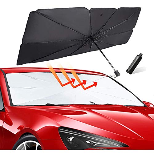 - 🚘【Material Resistente】 Hecho de acero de alta calidad, 10 esqueletos robustos, paragüero reforzado, cuentas de paraguas envueltas, el soporte es más estable. El parasol coche delantero grande no dañará el interior del automóvil/ pintura proteja bien su automóvil. Una parte del soporte de paraguas esta hecho de un muelle ajustable, puede doblarlo cuando se pone en al control. No se dañará su coche.